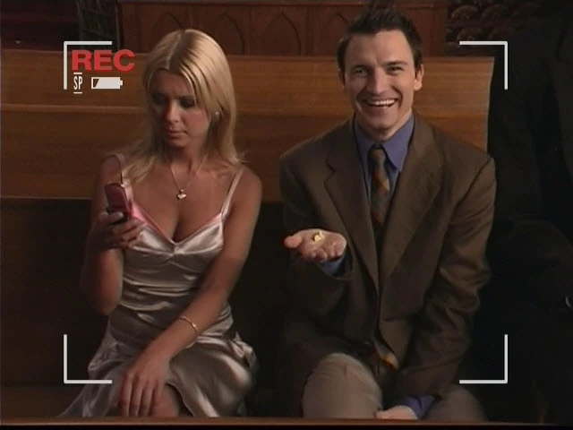 Doug hold Danni's gum. ("My Best Friend's Wedding")